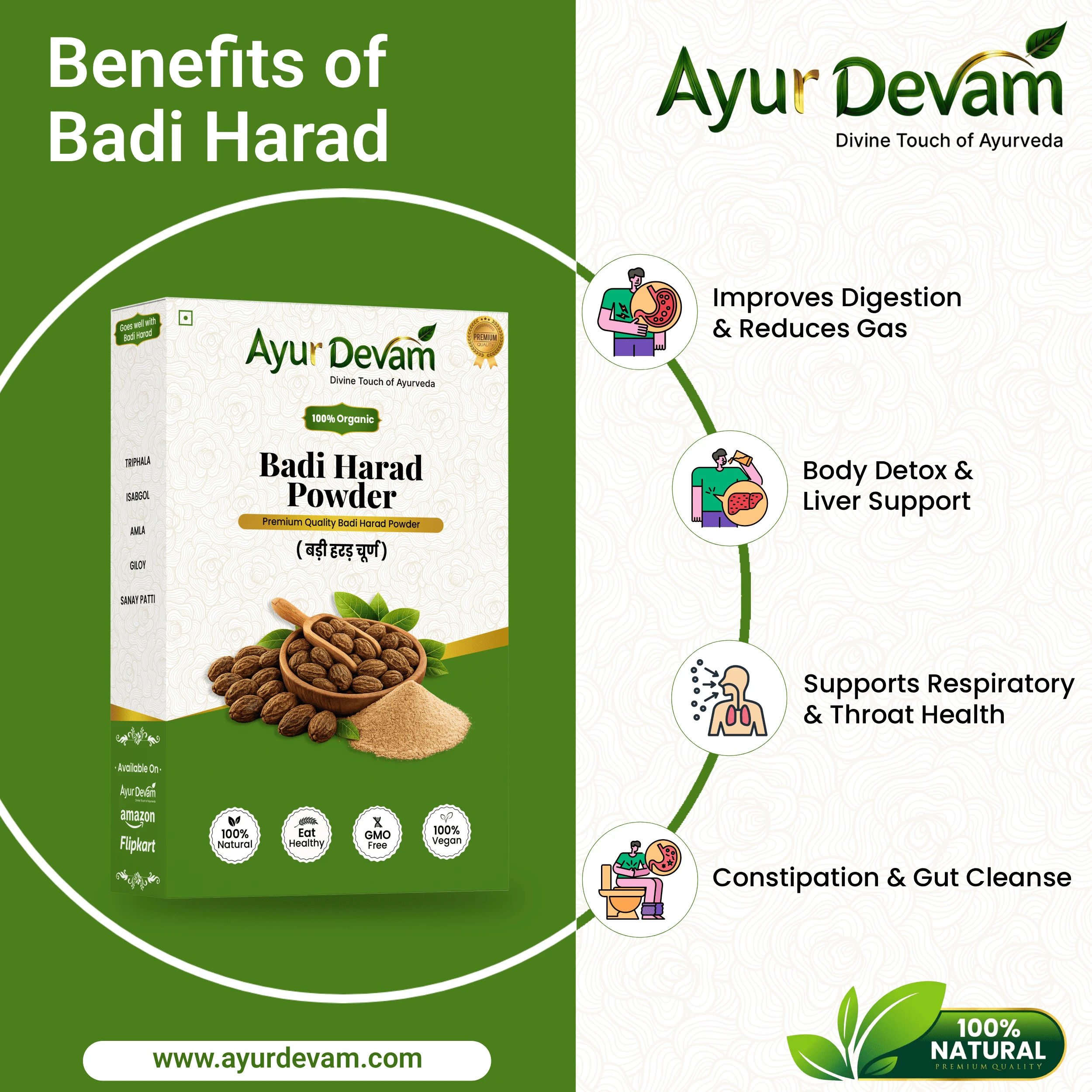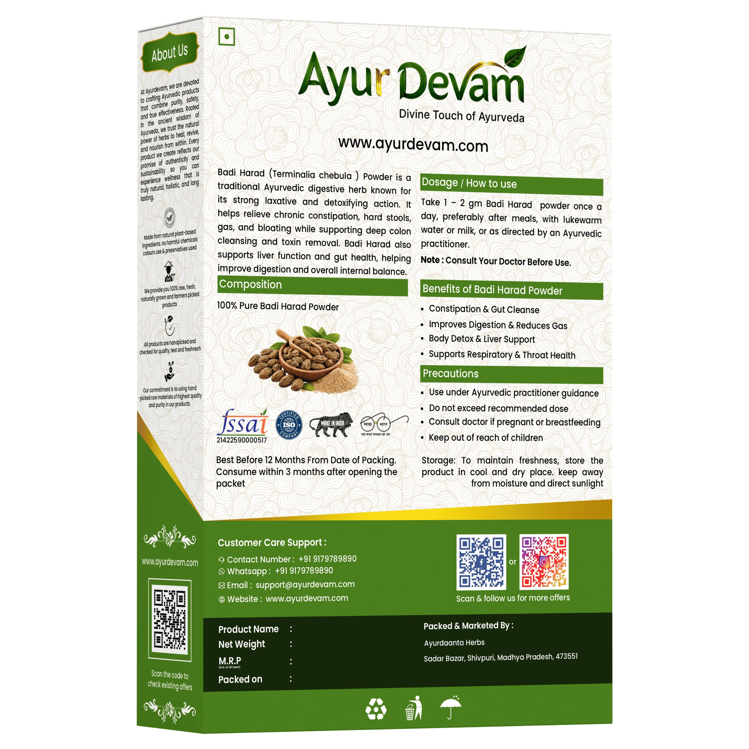 Badi Harad Powder is 100% natural, free from chemicals, and suitable for regular use as part of a healthy lifestyle.