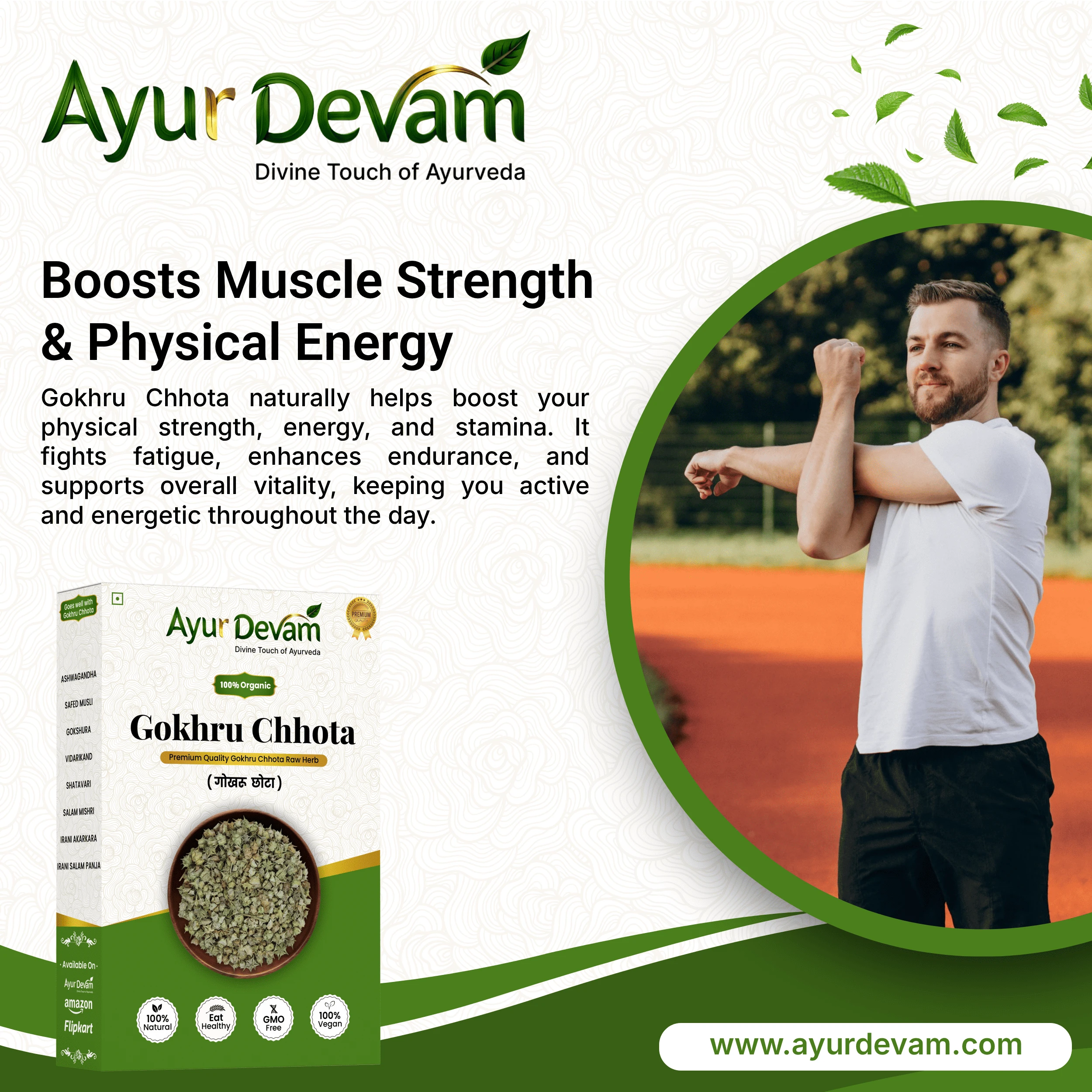 This powerful herb helps enhance physical strength, improve energy levels, and support reproductive health. It is also known for promoting healthy urinary function and maintaining overall body balance.