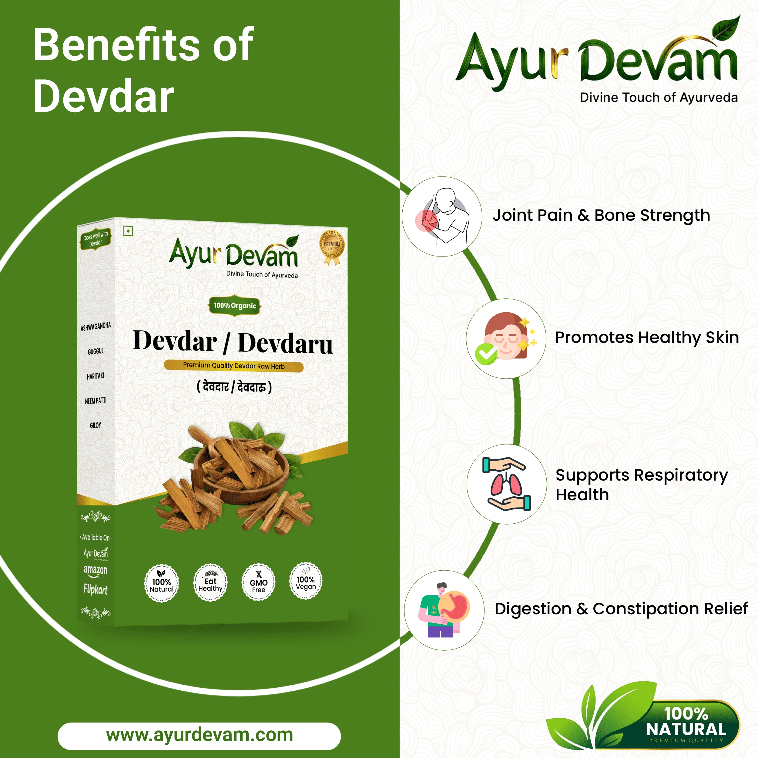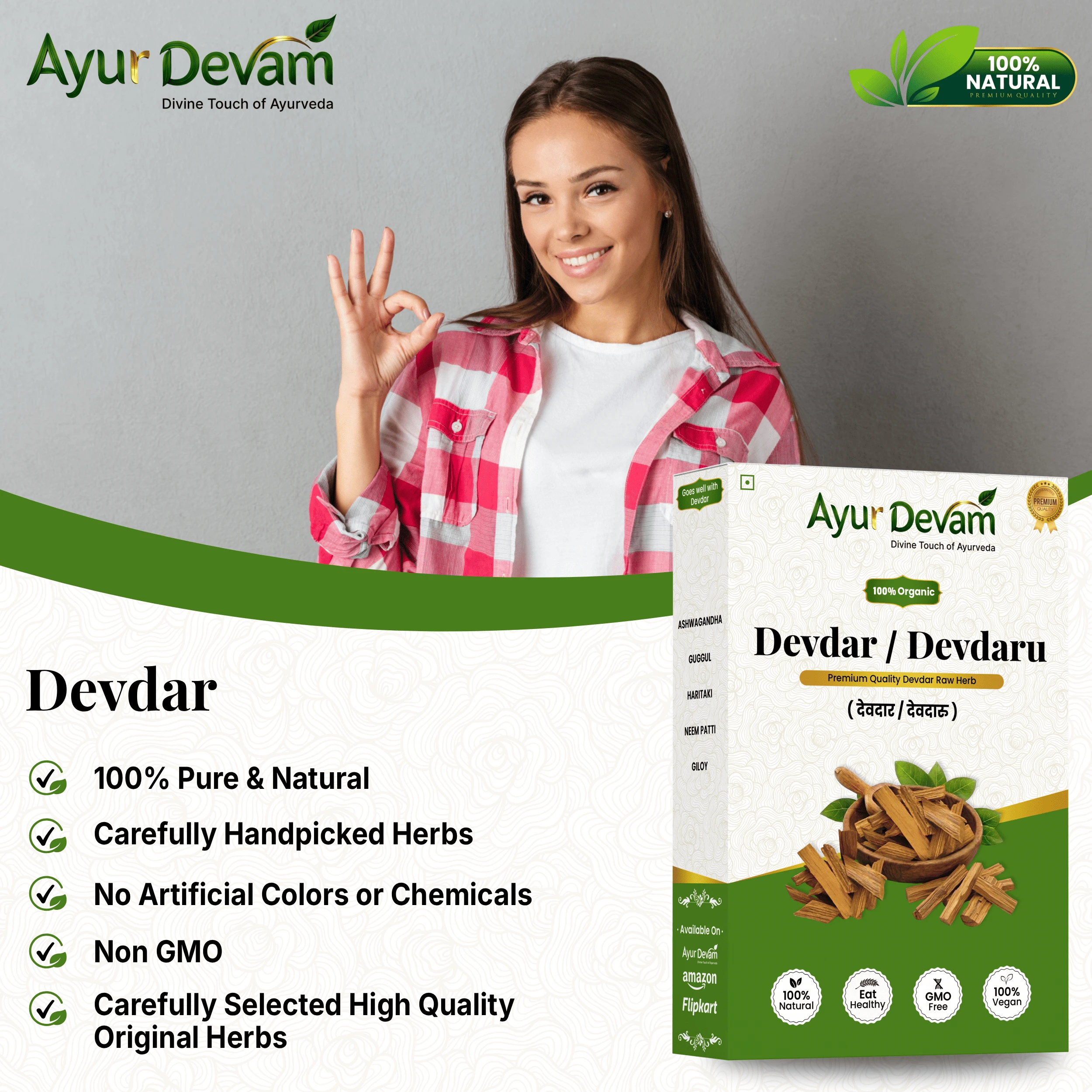 Devdar Powder is 100% natural, chemical-free, and suitable for both external and internal use under proper guidance.