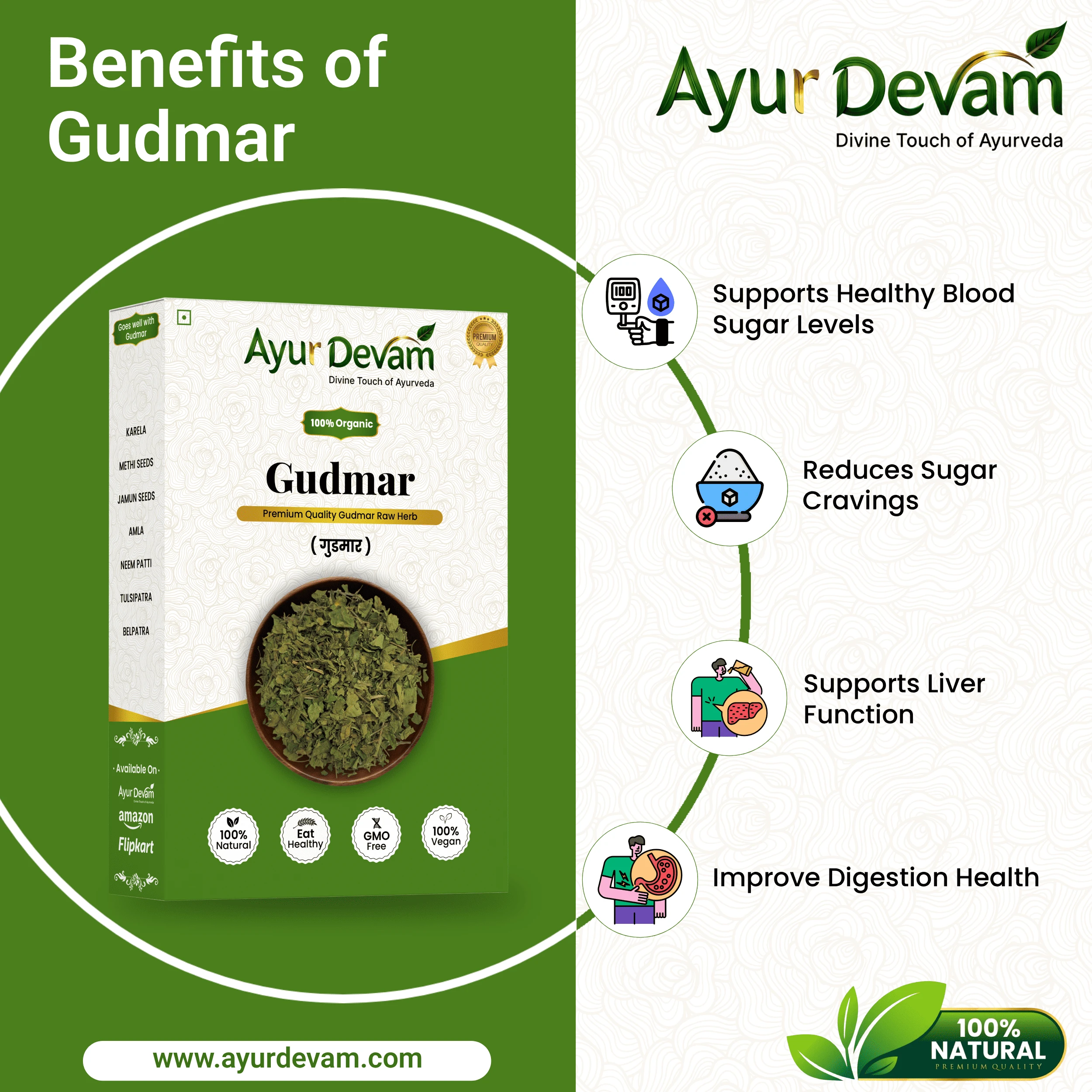 Gudmar Raw is 100% natural, chemical-free, and a trusted herb in Ayurveda for holistic wellness and blood sugar management.