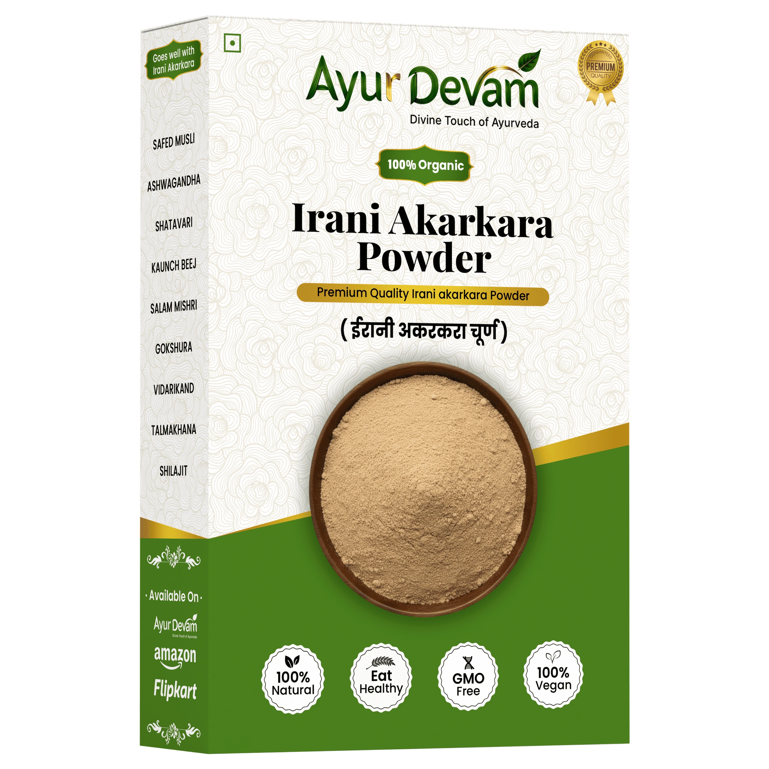 Irani Akarkara Powder is a premium natural herbal powder made from carefully selected high-quality Irani Akarkara roots. Known for its traditional use in Ayurveda and herbal medicine, this powder helps support overall strength, energy, stamina, and vitality.