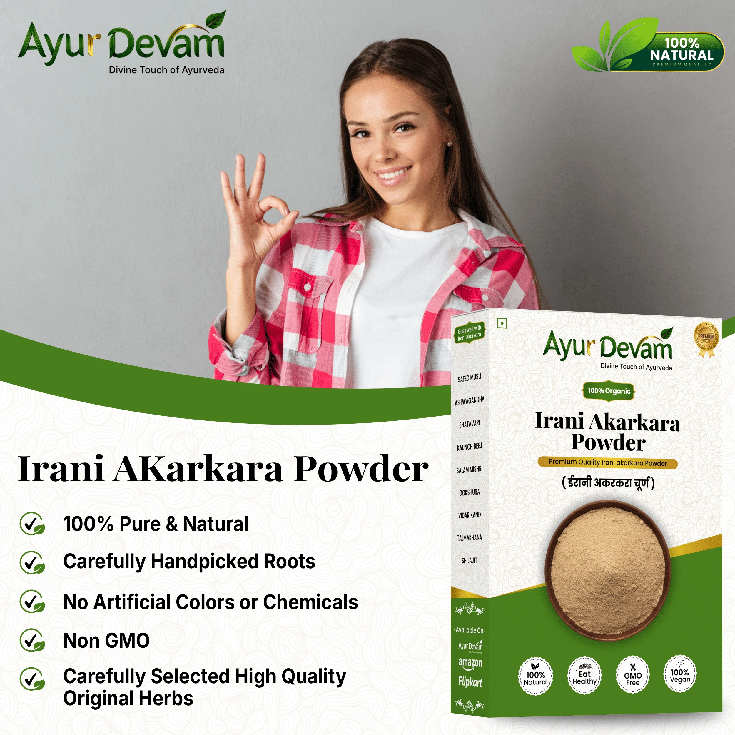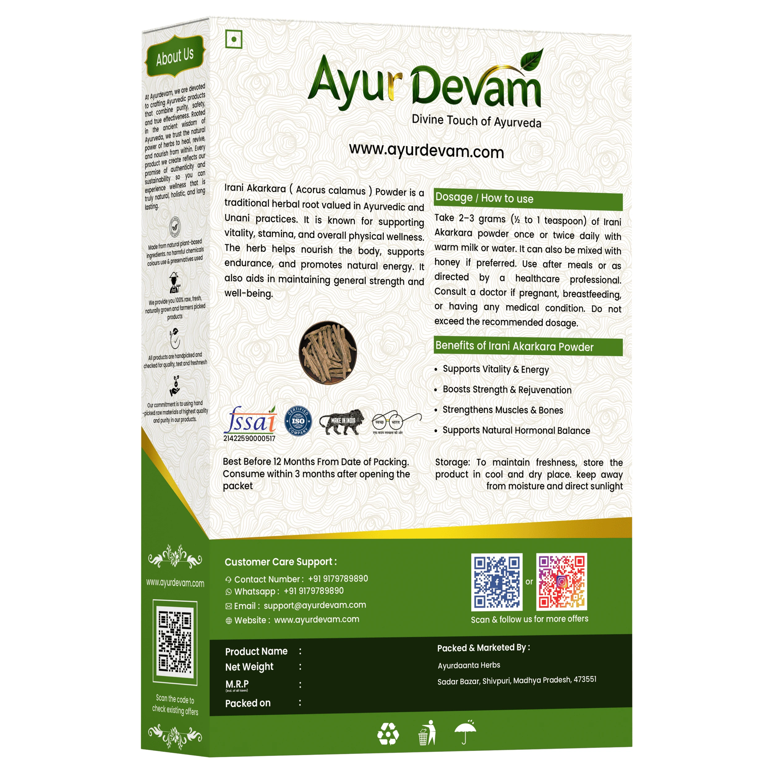 Rich in natural active compounds, Irani Akarkara Powder is widely used as a natural tonic to enhance wellness and promote a healthy lifestyle. It is ideal for those looking to incorporate traditional herbal remedies into their daily routine.