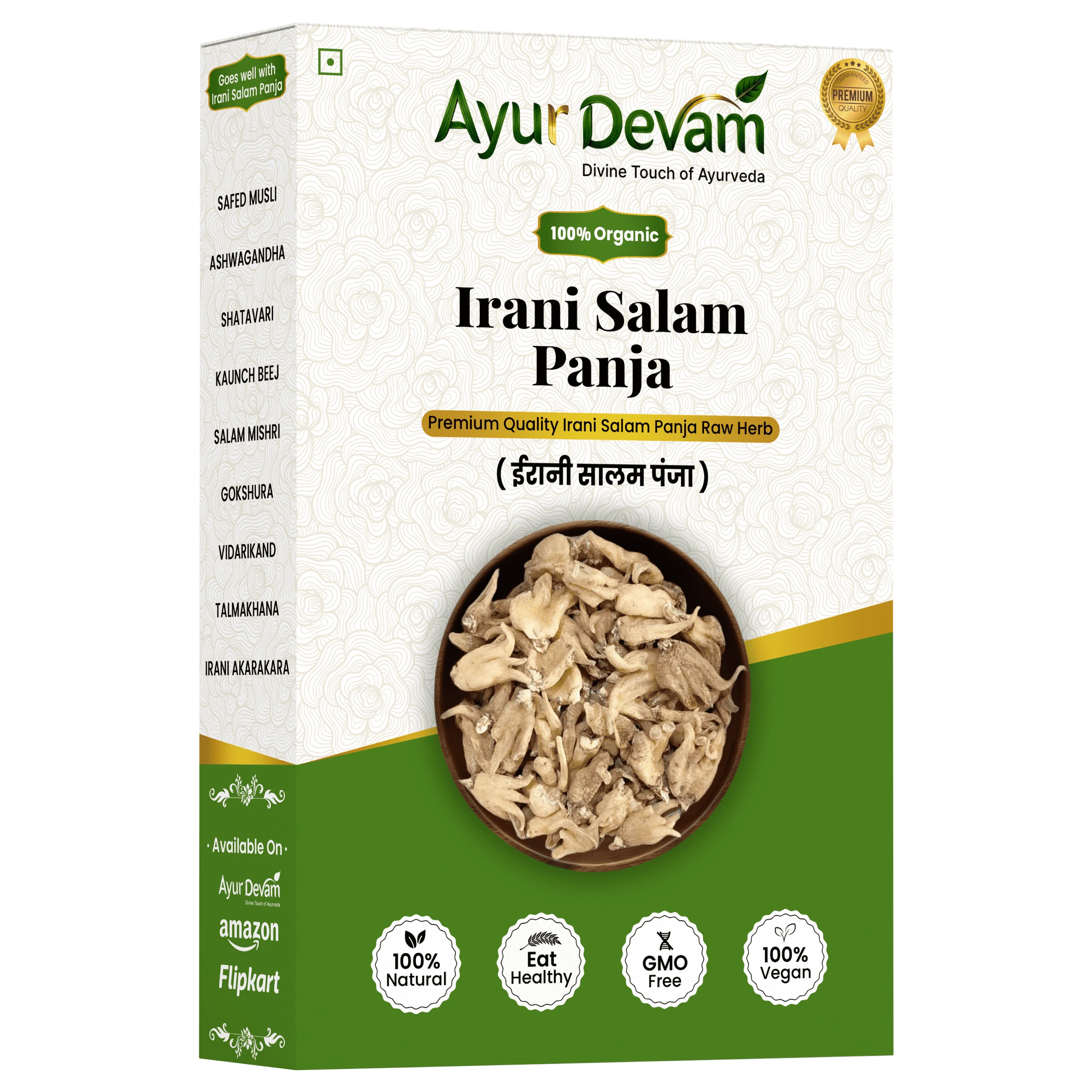 Irani Salam Panja Raw is the pure, unprocessed form of the powerful herbal root traditionally used in Ayurveda and herbal medicine. Carefully sourced from premium Irani plants, this whole root is known for its natural potency and therapeutic benefits.