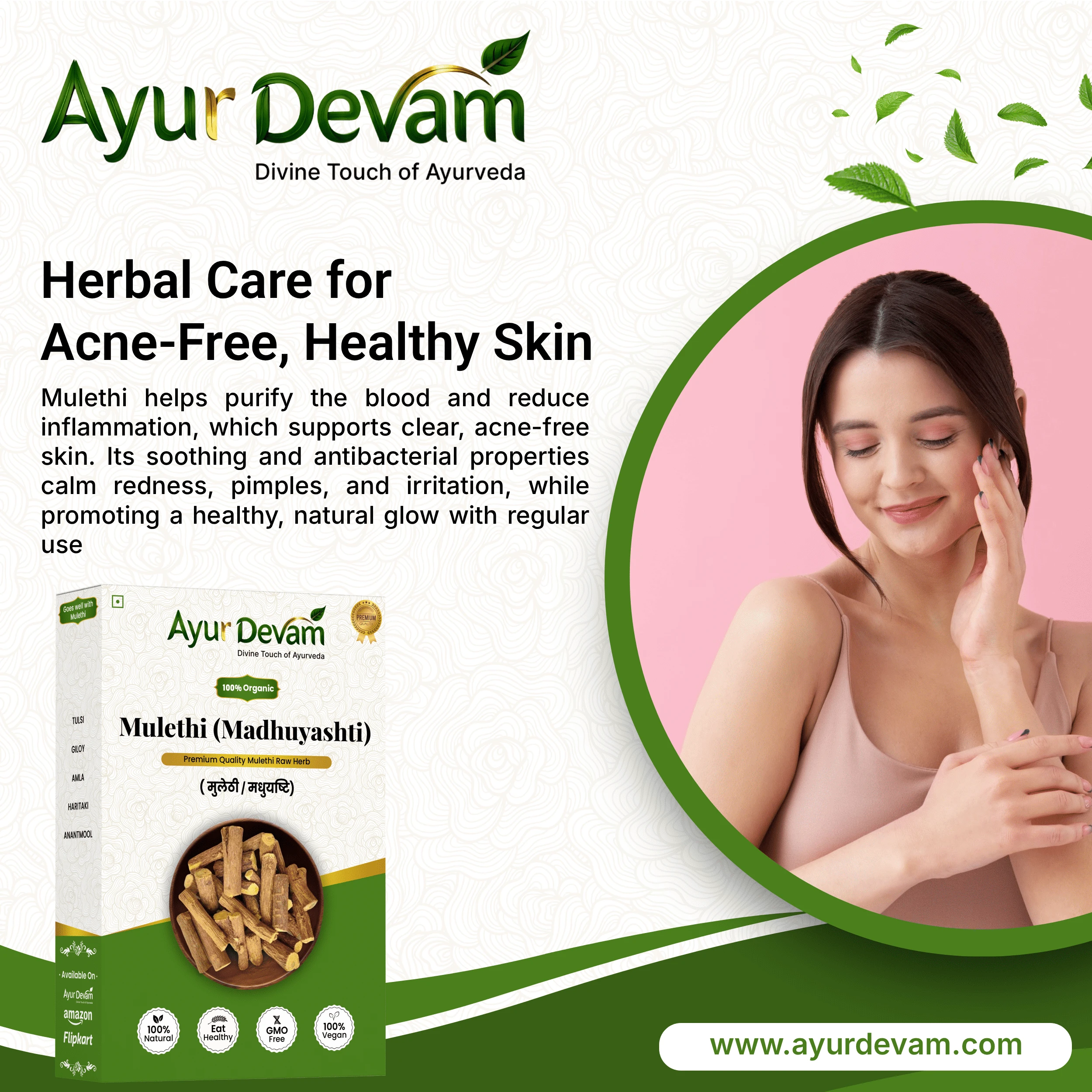 Rich in antioxidants, anti-inflammatory compounds, and natural bioactives, Mulethi Raw supports respiratory health, digestion, and skin wellness. Its therapeutic properties help soothe sore throats, reduce coughs, and improve digestion. When used externally, it can be ground or powdered to make skin packs that help reduce pigmentation, blemishes, and irritation.