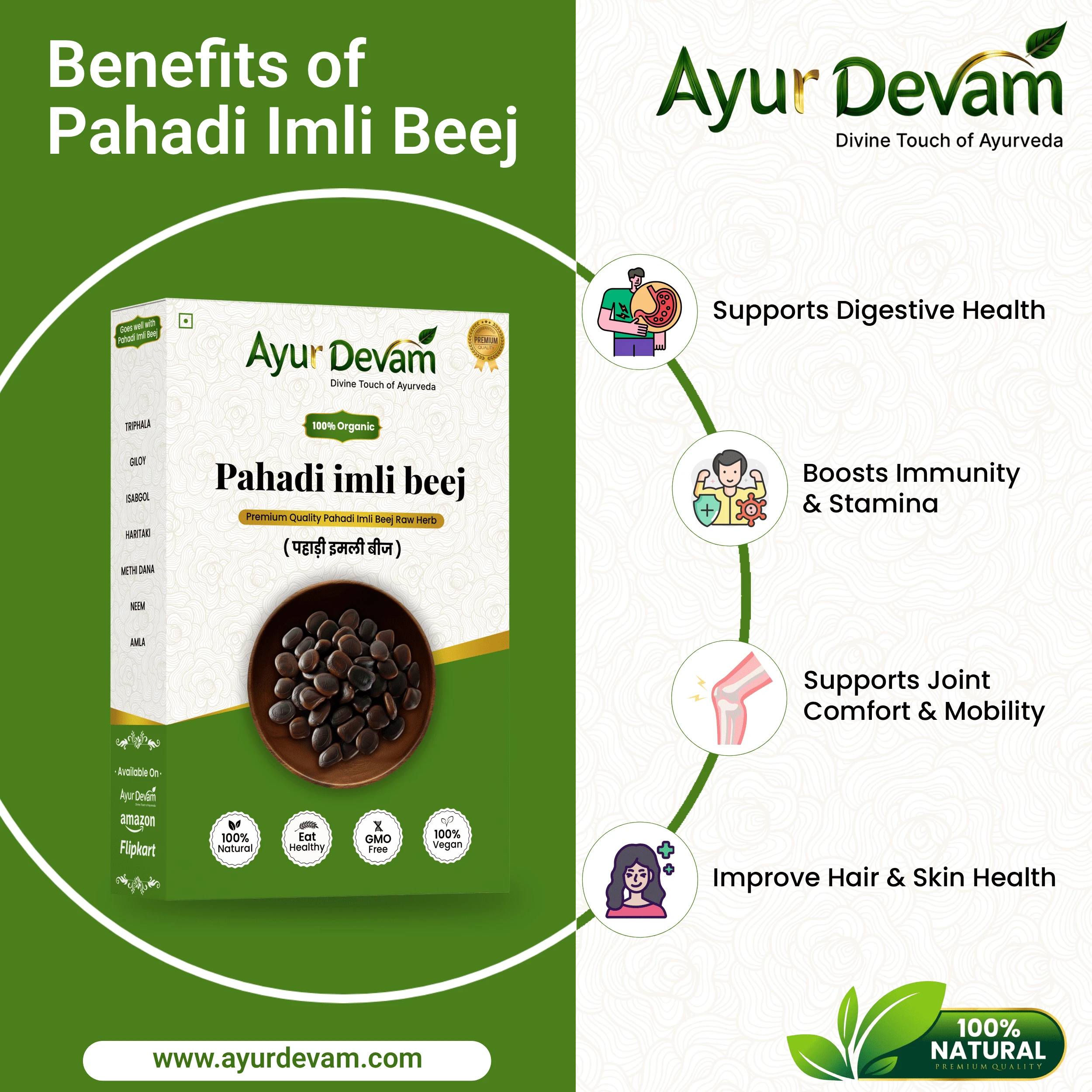 Being 100% natural and free from chemicals, preservatives, or additives, Pahadi Imlibeej Raw is perfect for those seeking authentic, minimally processed herbal solutions for holistic health.