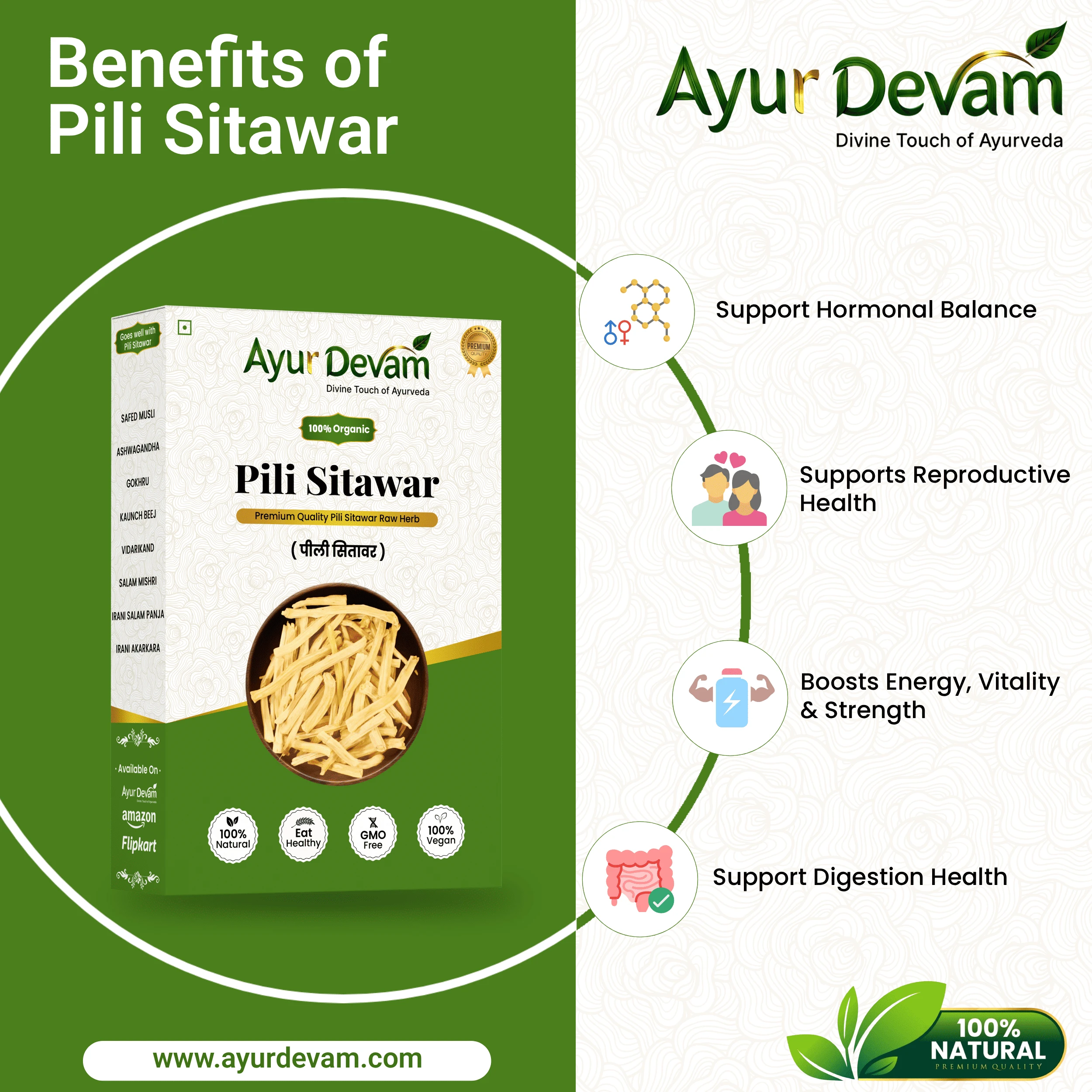 Being 100% natural, chemical-free, and preservative-free, Pili Shatawari Raw is perfect for those seeking authentic Ayurvedic remedies in their most potent form.