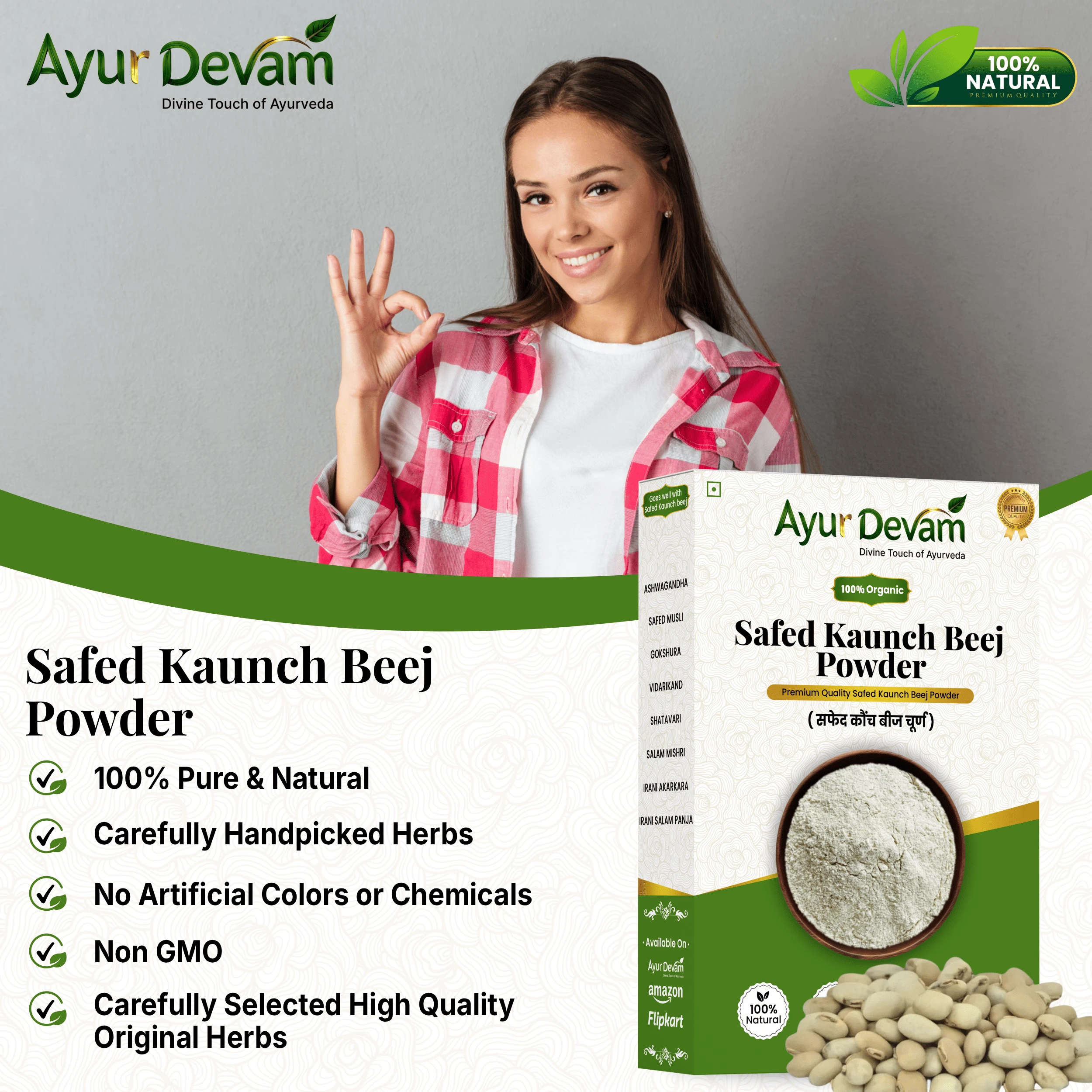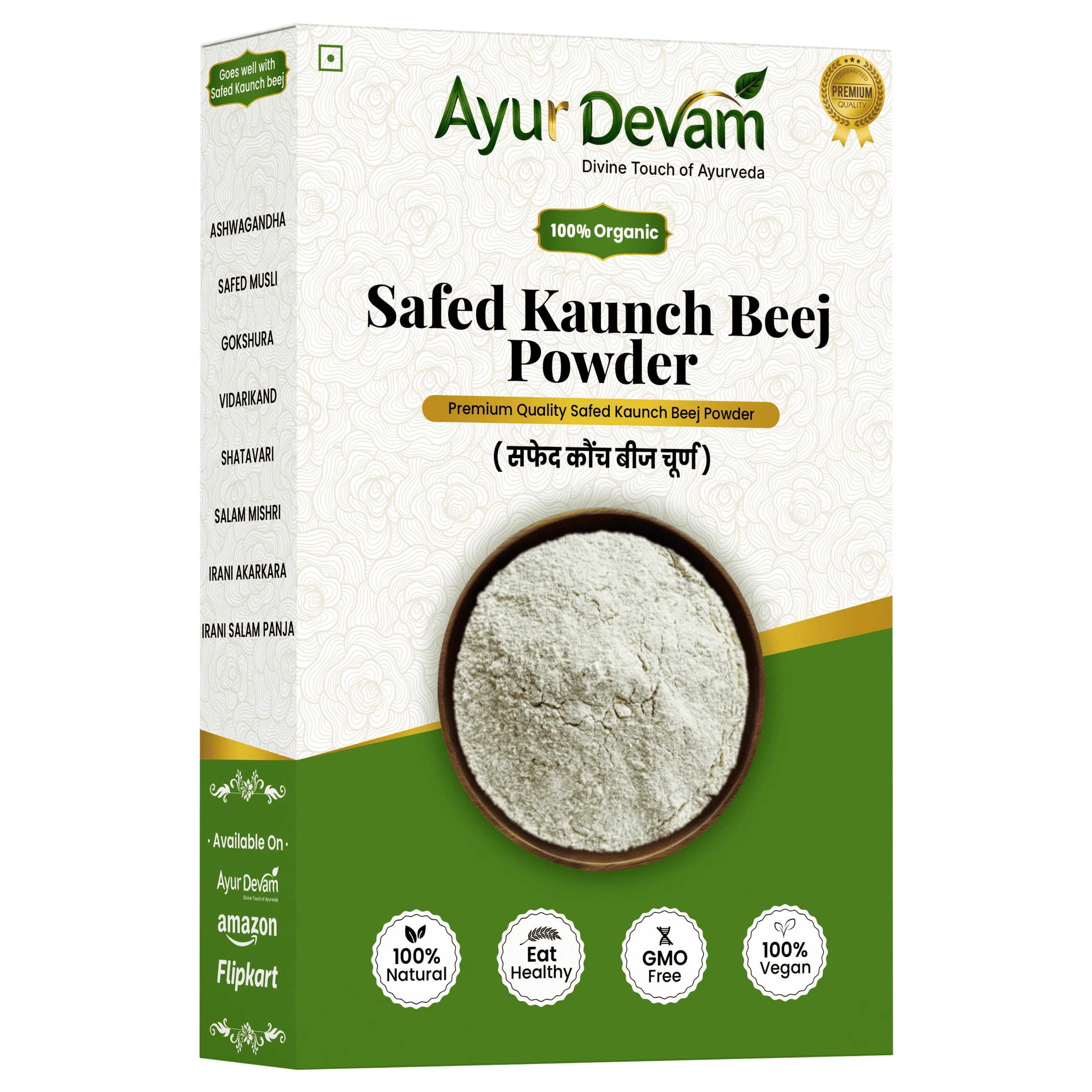 Safed Kaunch Beej Powder and other quality Safed Kaunchbeej Powders are made from carefully selected white Kaunch seeds (also called Mucuna pruriens), a traditional herbal ingredient widely used in Ayurveda for overall wellness. This natural powder supports energy, stamina, physical strength, and vitality, making it a valuable addition to your daily health routine.