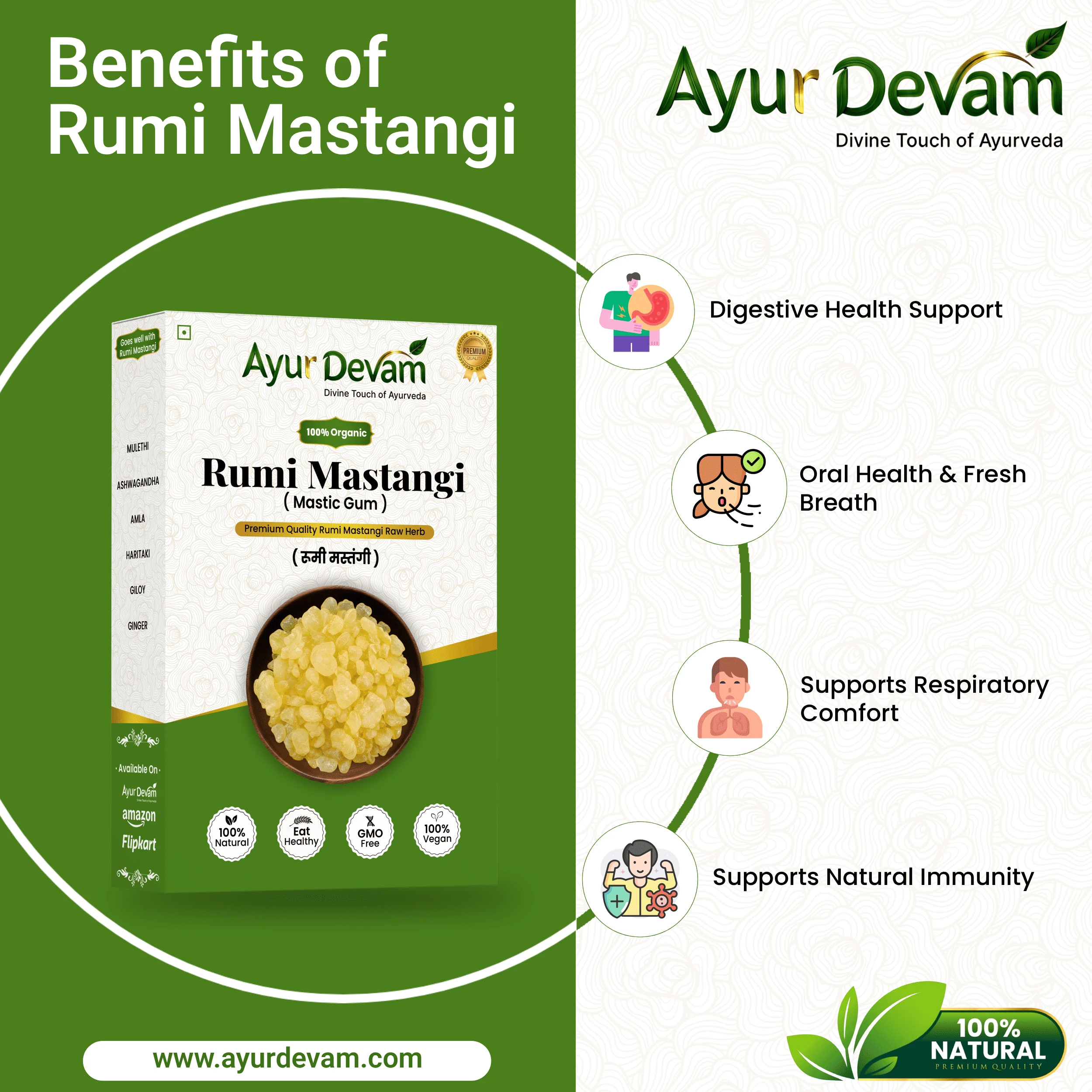 100% natural, chemical-free, and preservative-free, Rumi Mastangi is ideal for those seeking authentic Ayurvedic solutions for holistic health and wellness.