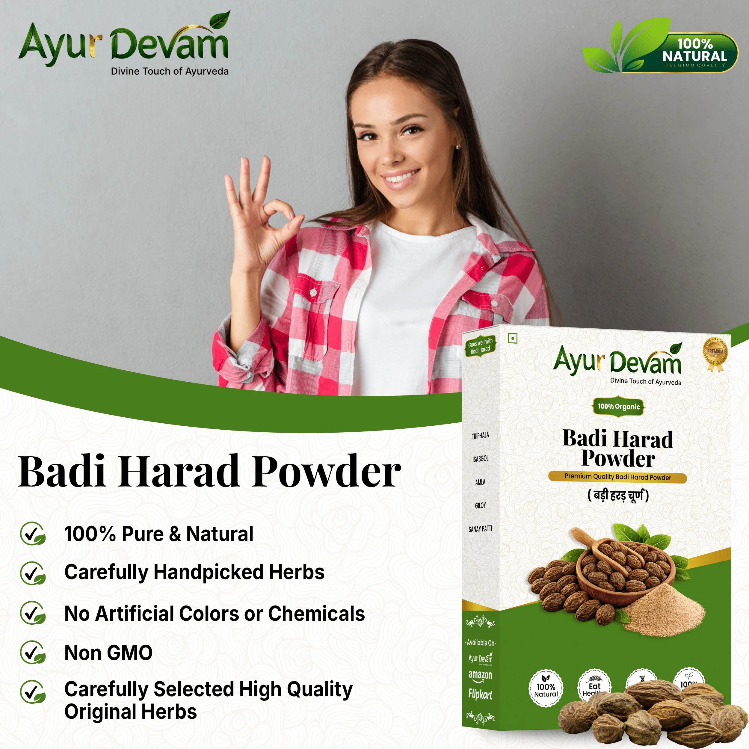 Badi Harad Powder is 100% natural, free from chemicals, and suitable for regular use as part of a healthy lifestyle.