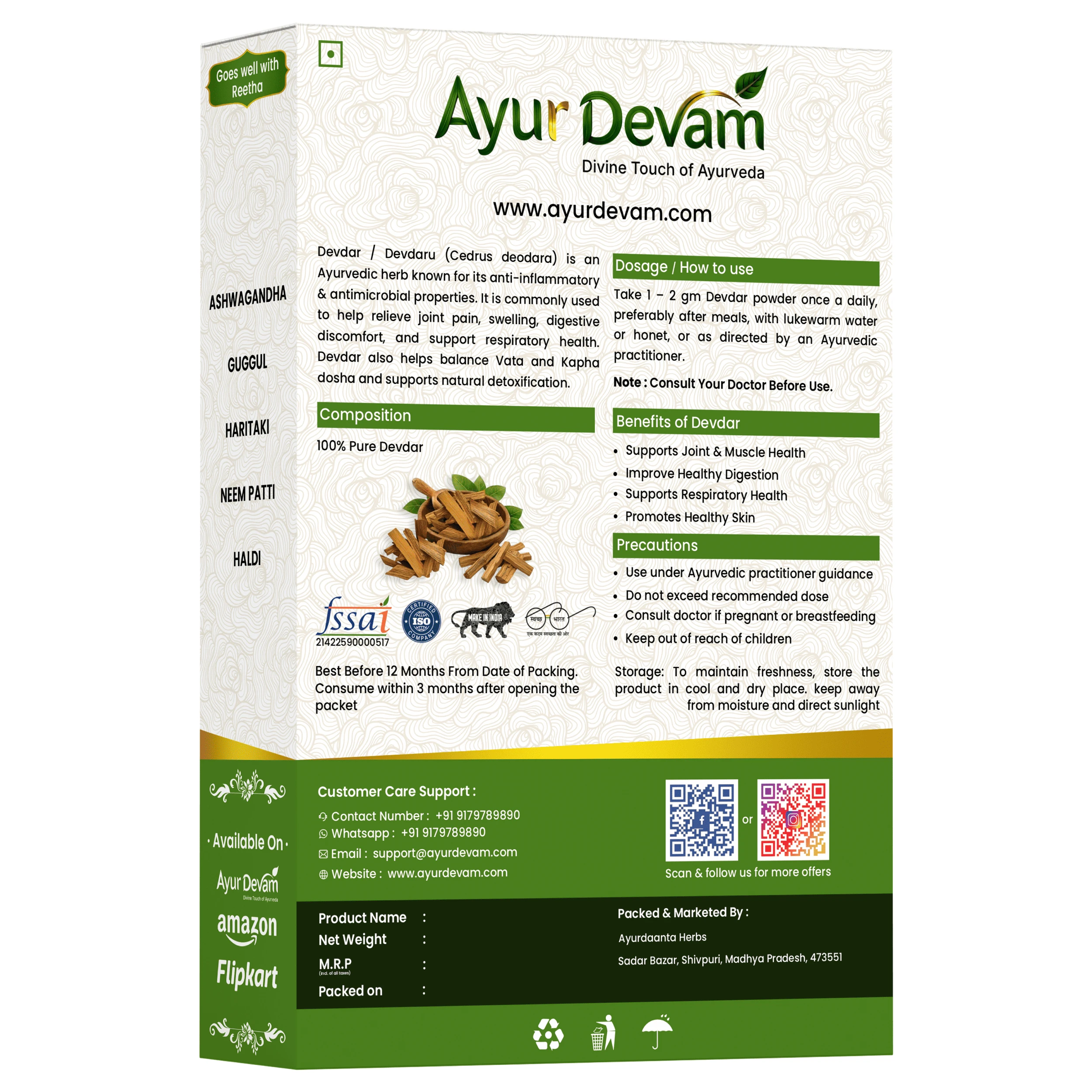 Devdar Powder is 100% natural, chemical-free, and suitable for both external and internal use under proper guidance.