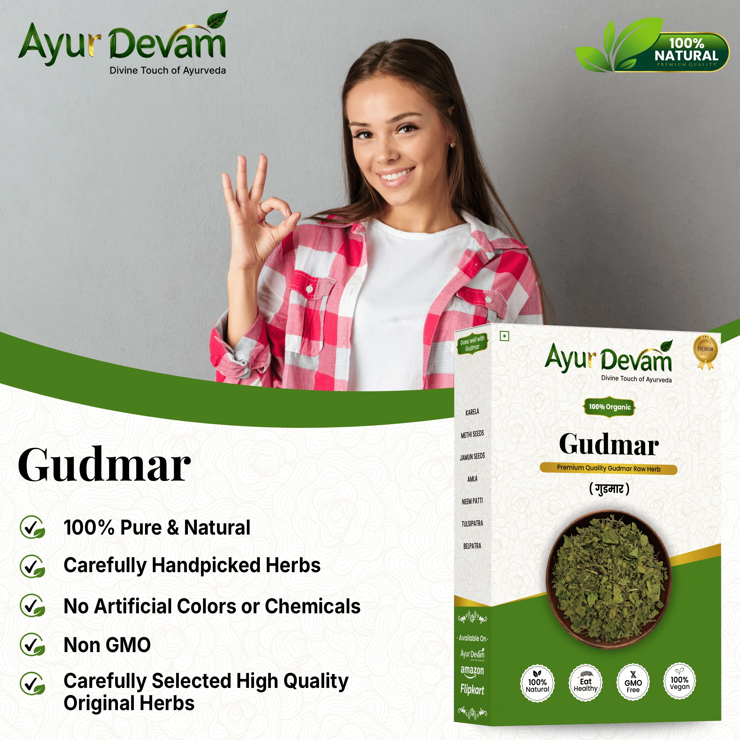 Gudmar Raw is 100% natural, chemical-free, and a trusted herb in Ayurveda for holistic wellness and blood sugar management.