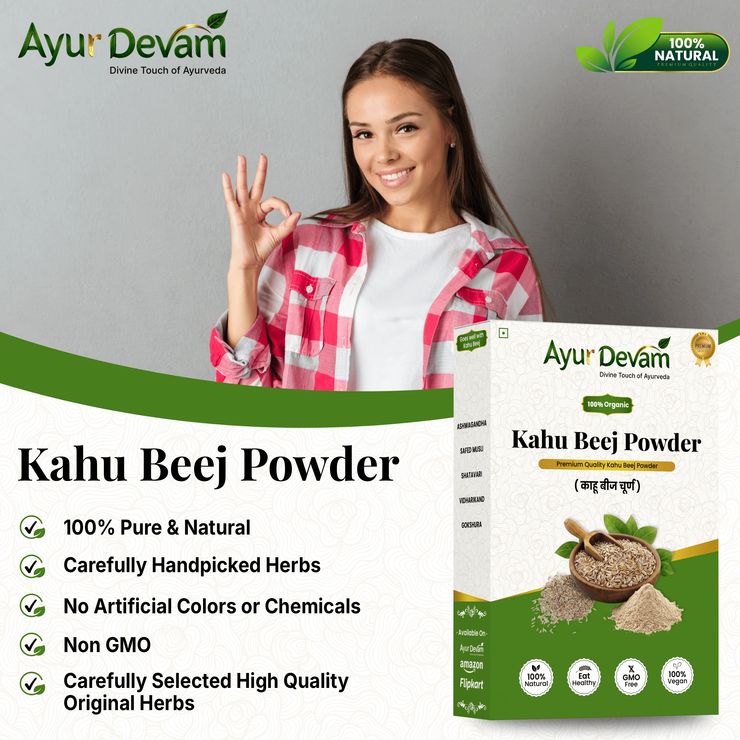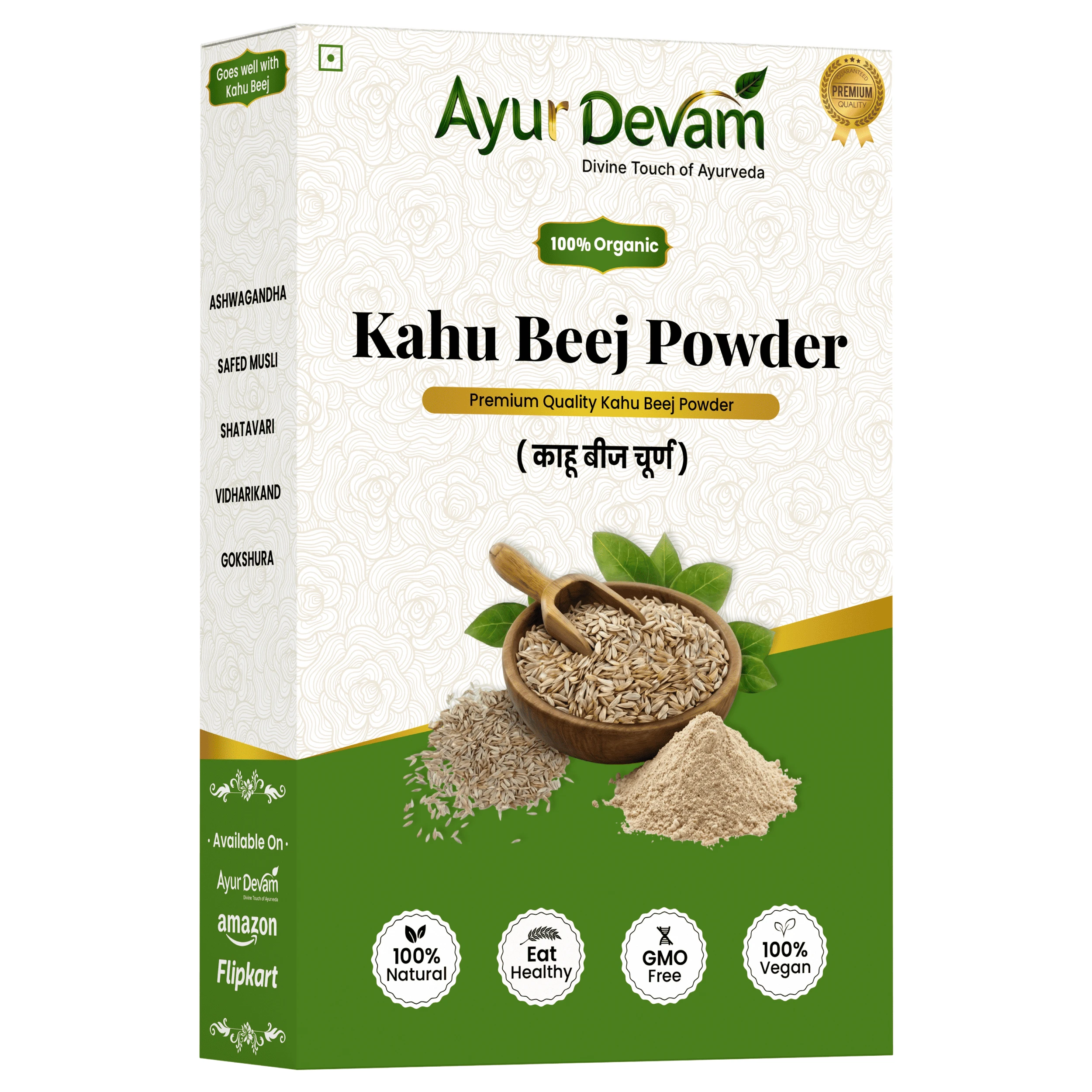 Carefully cleaned and finely ground, Kahu Beej Powder retains its natural nutrients and bioactive compounds that help soothe the nervous system. It is especially beneficial for individuals dealing with insomnia, anxiety, or restlessness. Its mild sedative properties help calm the mind and improve sleep quality without causing dependency.