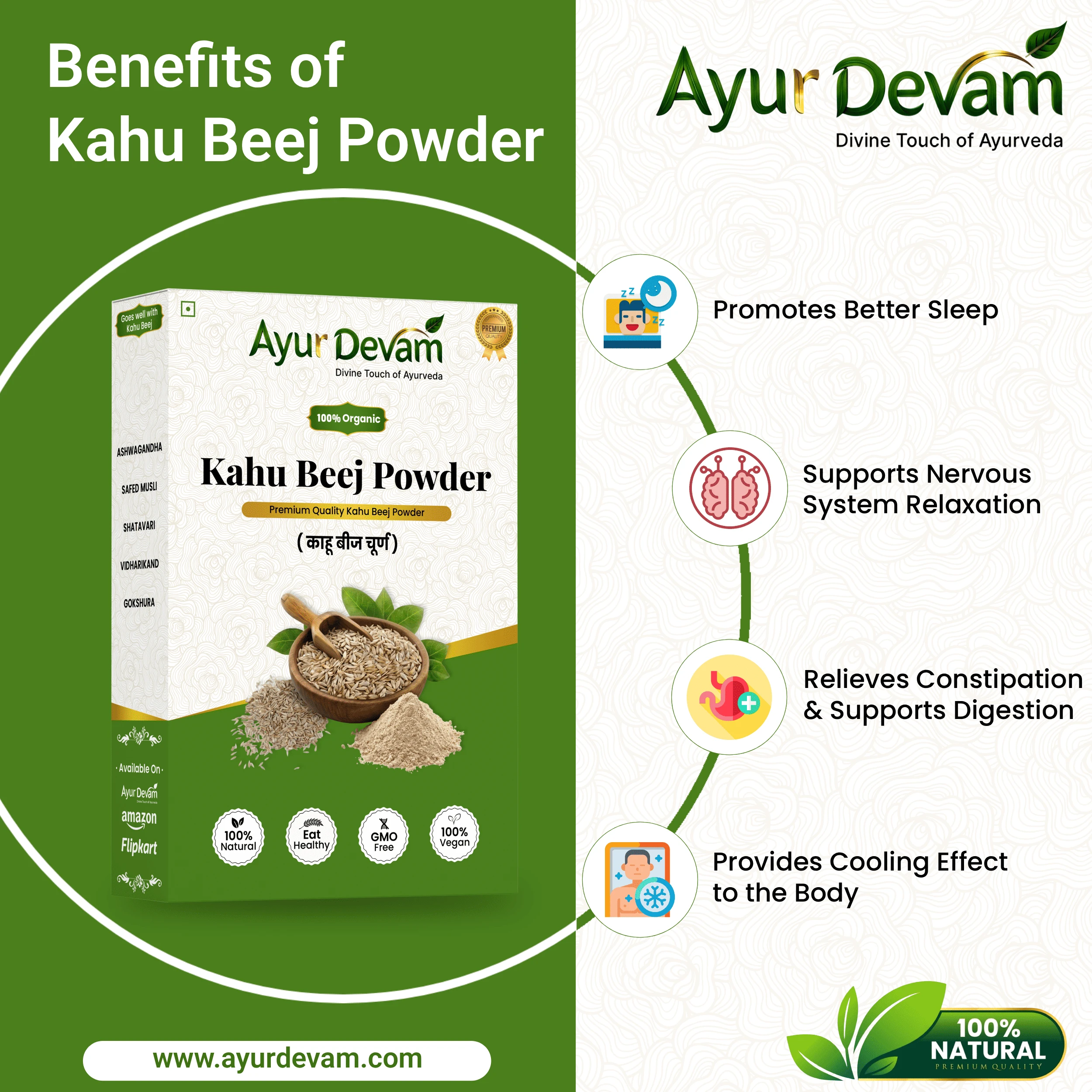 In addition to sleep support, Kahu Beej Powder may also help in improving digestion and maintaining overall mental well-being. It is 100% natural, free from chemicals, additives, and preservatives, making it safe for regular use.