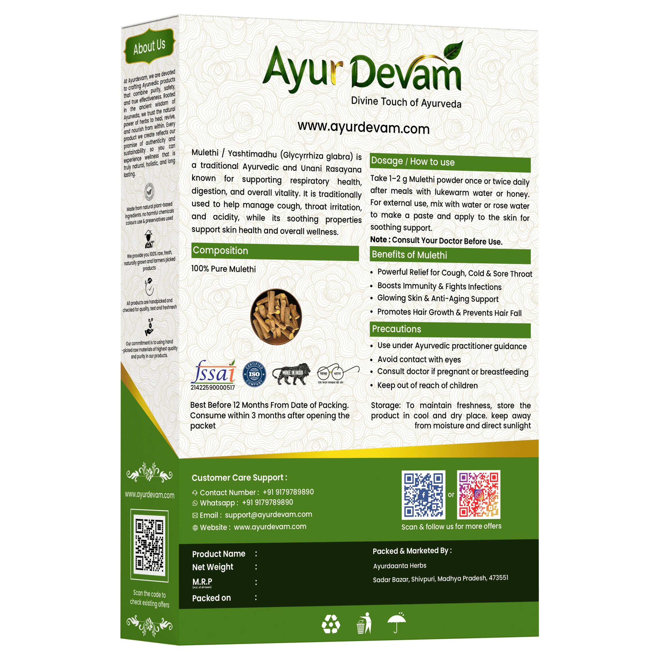 Being 100% natural and free from chemicals, preservatives, and additives, Mulethi Raw is perfect for those who prefer authentic, minimally processed Ayurvedic herbs for holistic health and wellness.