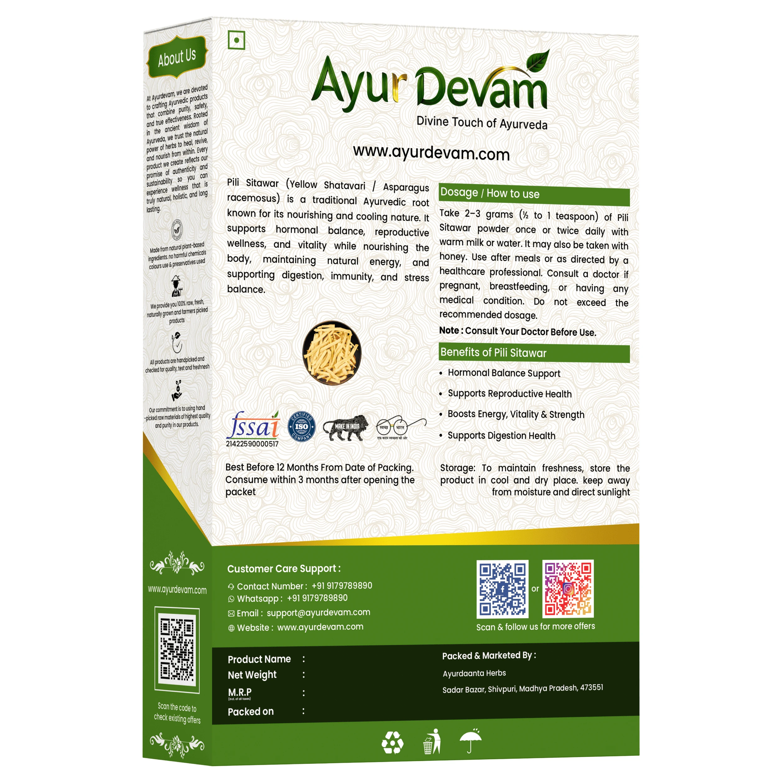 Being 100% natural, chemical-free, and preservative-free, Pili Shatawari Raw is perfect for those seeking authentic Ayurvedic remedies in their most potent form.