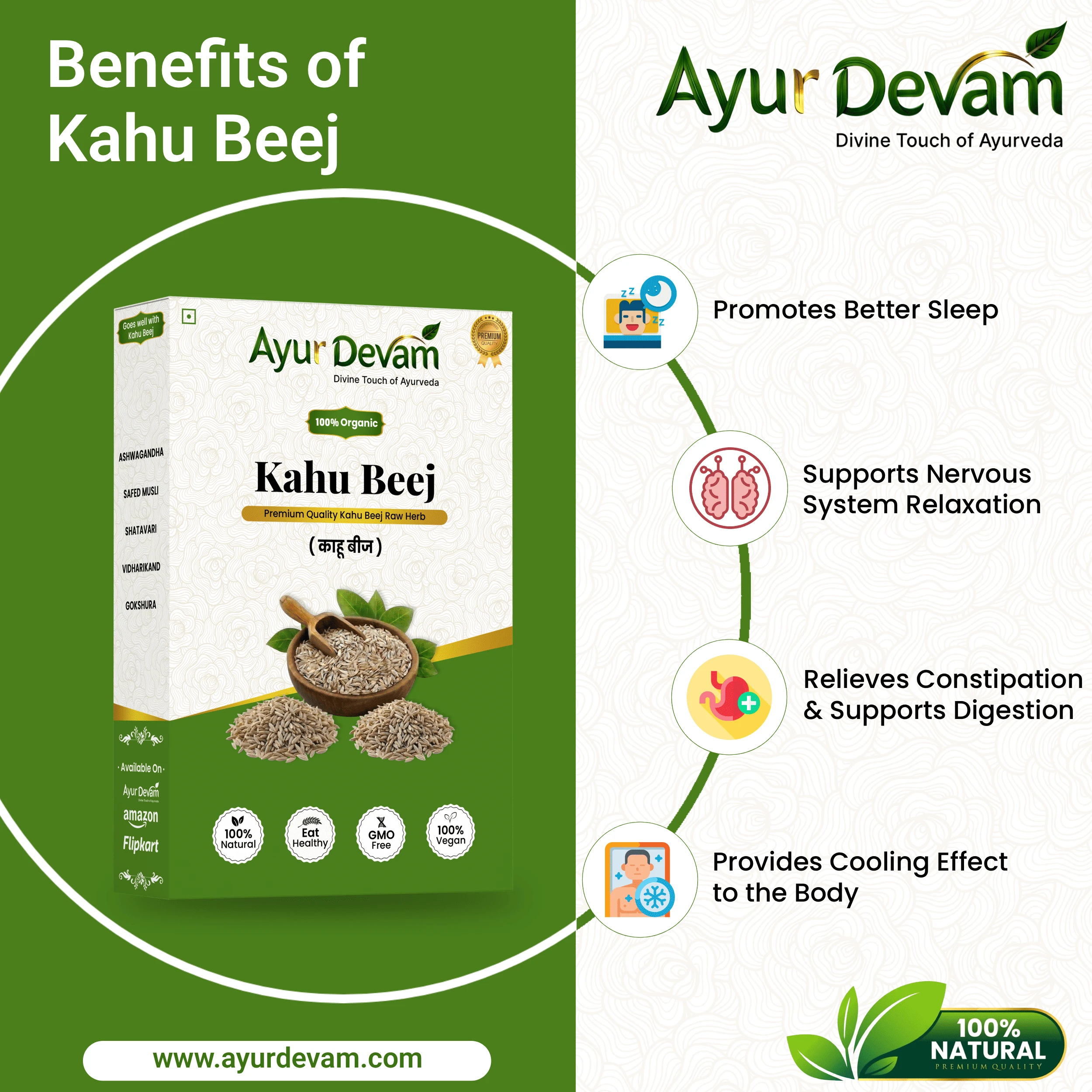 Rich in natural compounds that support the nervous system, Kahu Beej also contributes to mental relaxation and overall well-being. Being 100% pure and chemical-free, it is a safe and natural addition to a healthy lifestyle.