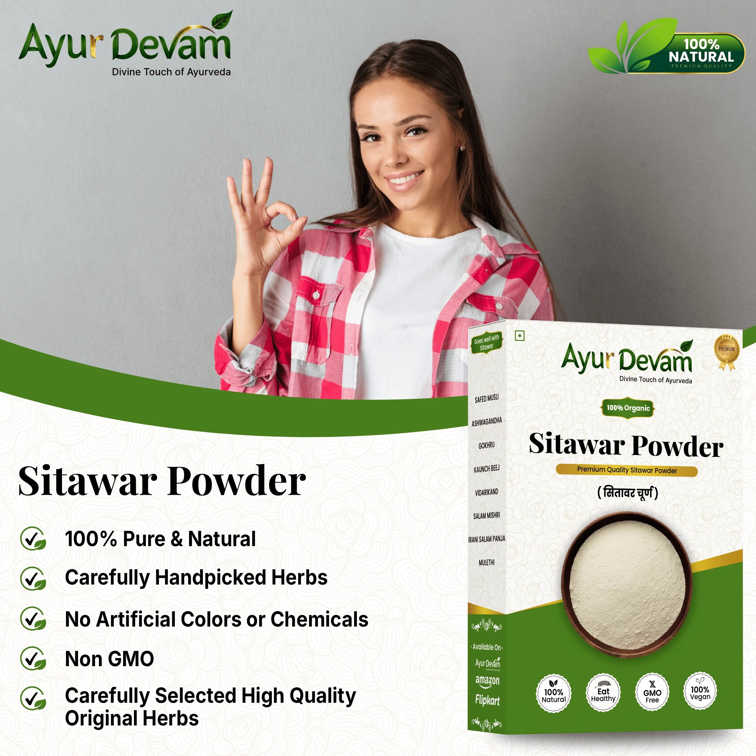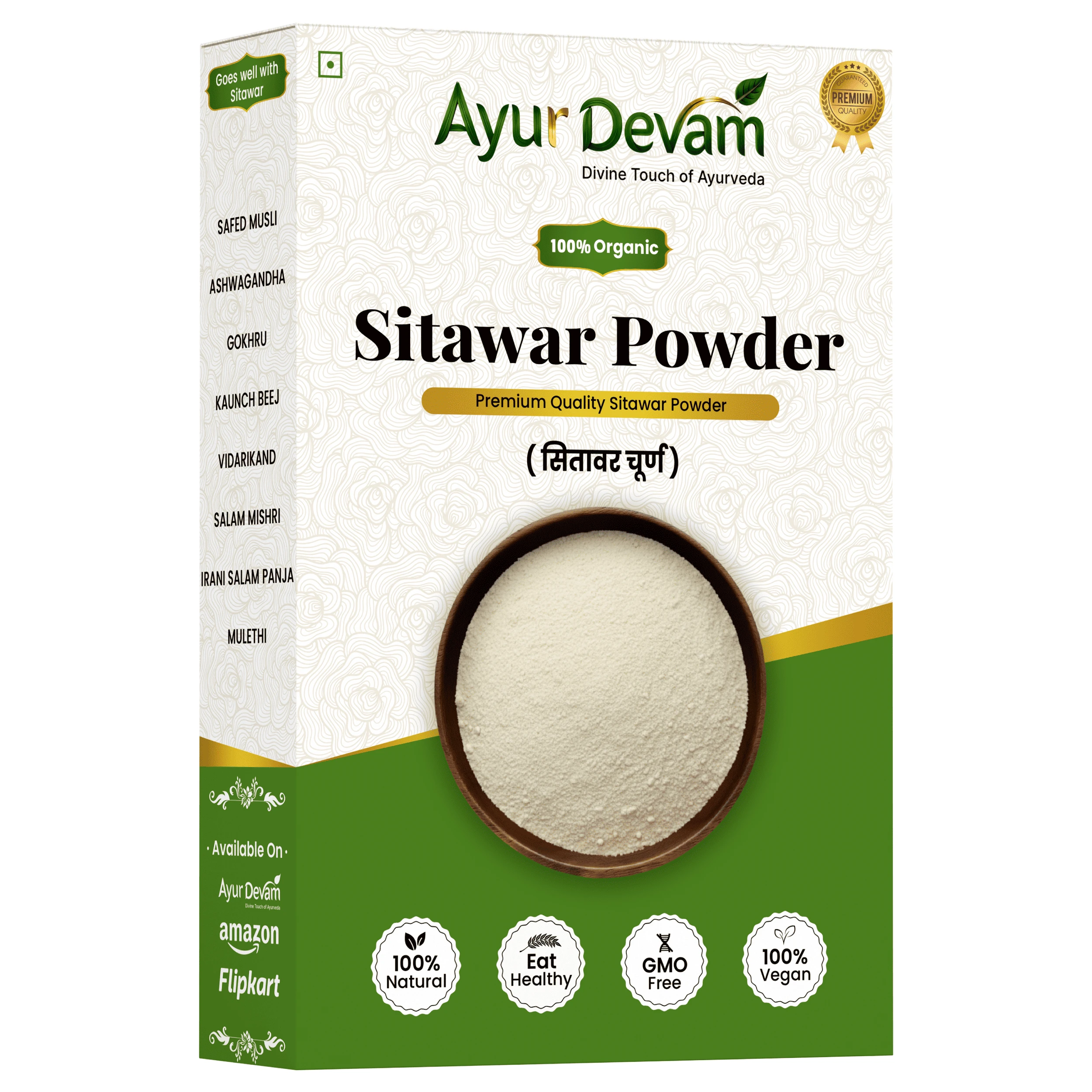 Sitawar Powder, also known as Shatavari Powder, is a premium-quality natural herbal supplement made from pure Asparagus racemosus roots. In traditional Ayurveda, Sitawar has been revered as a rejuvenating rasayana herb, especially known for supporting women’s health, hormonal balance, lactation, and overall vitality. It also helps in boosting immunity and maintaining general wellness. Sitawar is an adaptogenic herb that works gently with the body to support digestion, hormone regulation, and physical stamina, making it suitable for daily use as part of a healthy lifestyle.